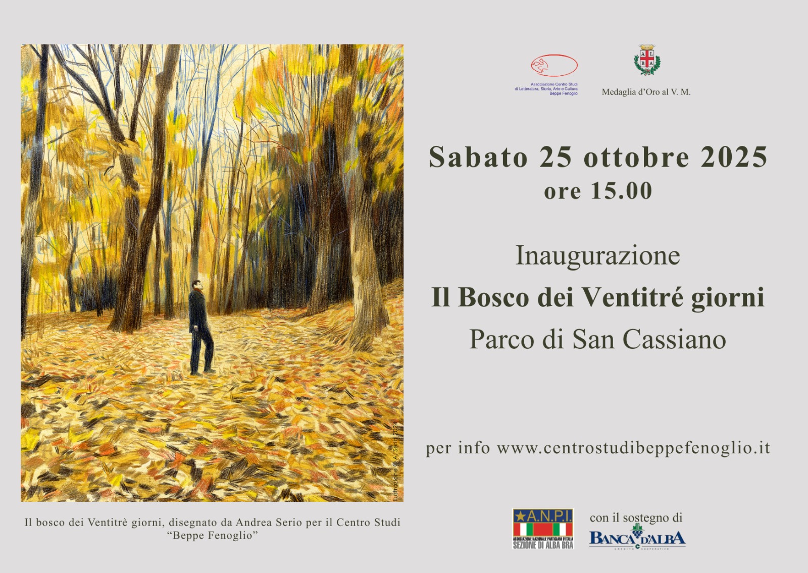 In occasione degli 80 anni dei Ventitré giorni della Città di Alba e della mostra Diagonali////Covers promossa dal Centro Studi "Beppe Fenoglio" nell'autunno 2024, è stata decisa la piantumazione di 23 alberi nel Parco di San Cassiano. Dopo la messa a dimora, voluta e sostenuta da Banca d'Alba, Il Bosco dei ventitré giorni ha ancorato le sue radici alla terra della collina di San Cassiano.