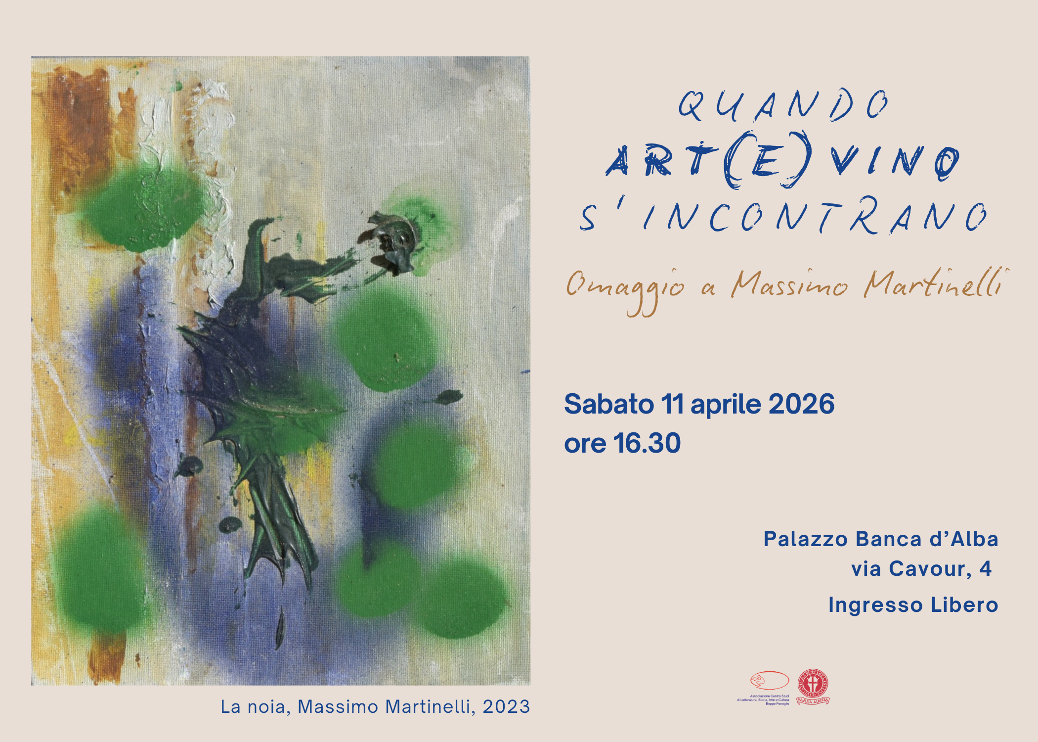 Un'occasione unica per raccontare l'enologo, scrittore e pittore, Massimo Martinelli attraverso il rapporto con il suo insegnante Pinot Gallizio. Dalla Scuola Enologica alla pittura, un viaggio alla scoperta dei percorsi di conoscenza e creatività di due uomini che con le loro esperienze arricchiscono la Cultura enologica e artistica delle Langhe, e non solo.